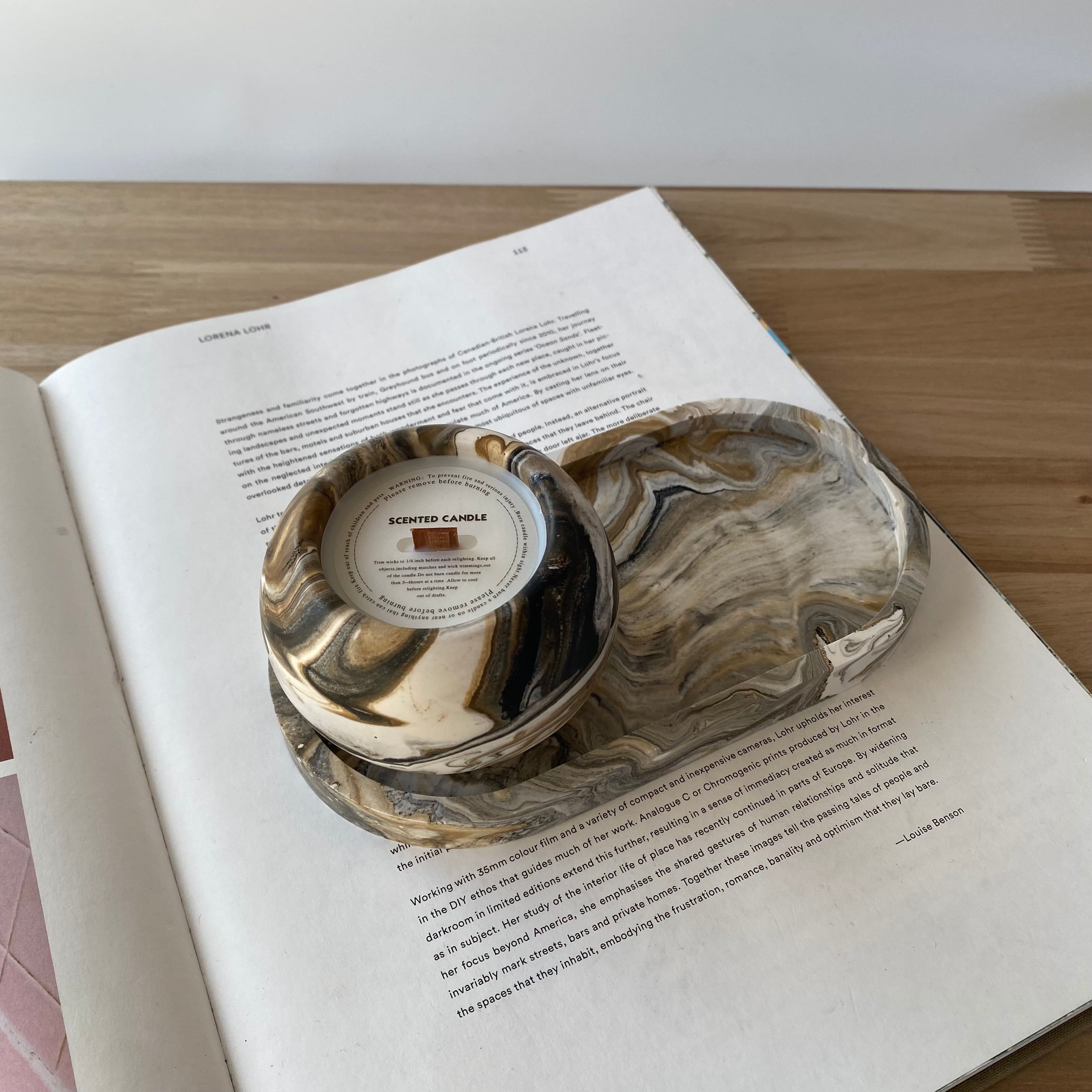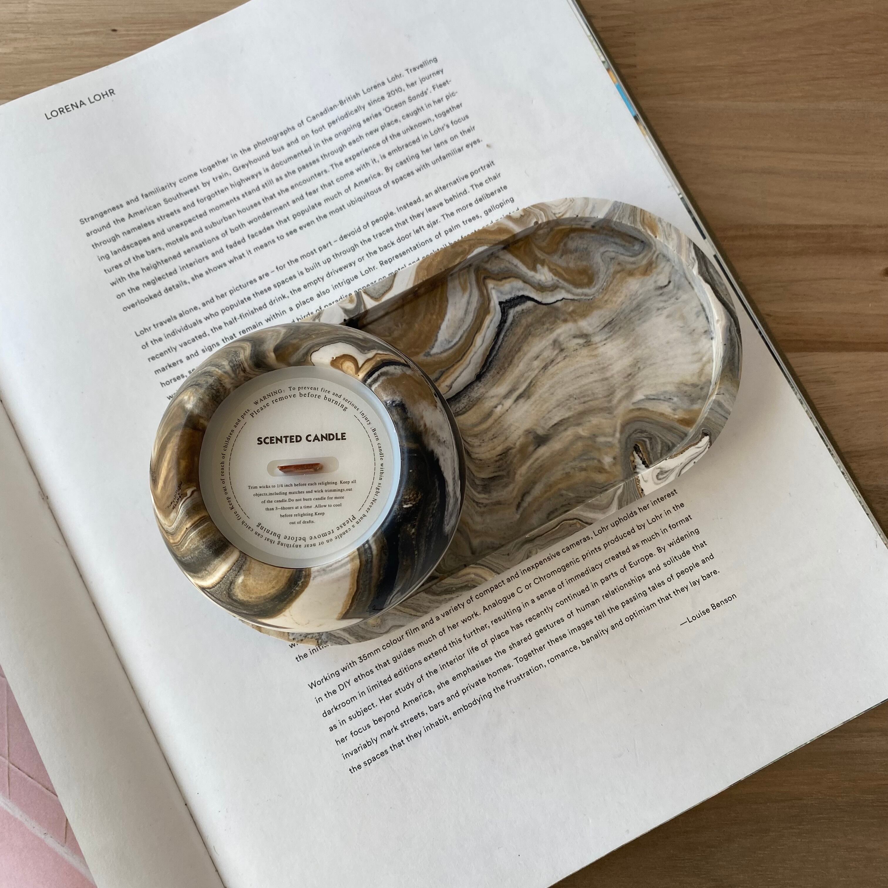 【GIFTSET】Potteri Candle & Tray Set / Coffee Marble