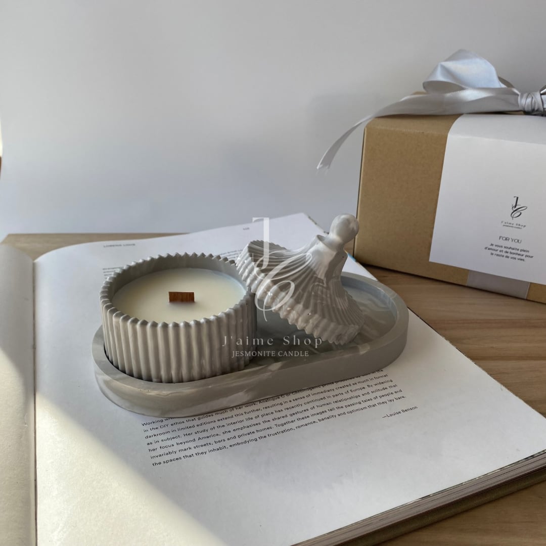 【GIFTSET】Trinket Box Candle & Oval Tray Set / Greige Marble