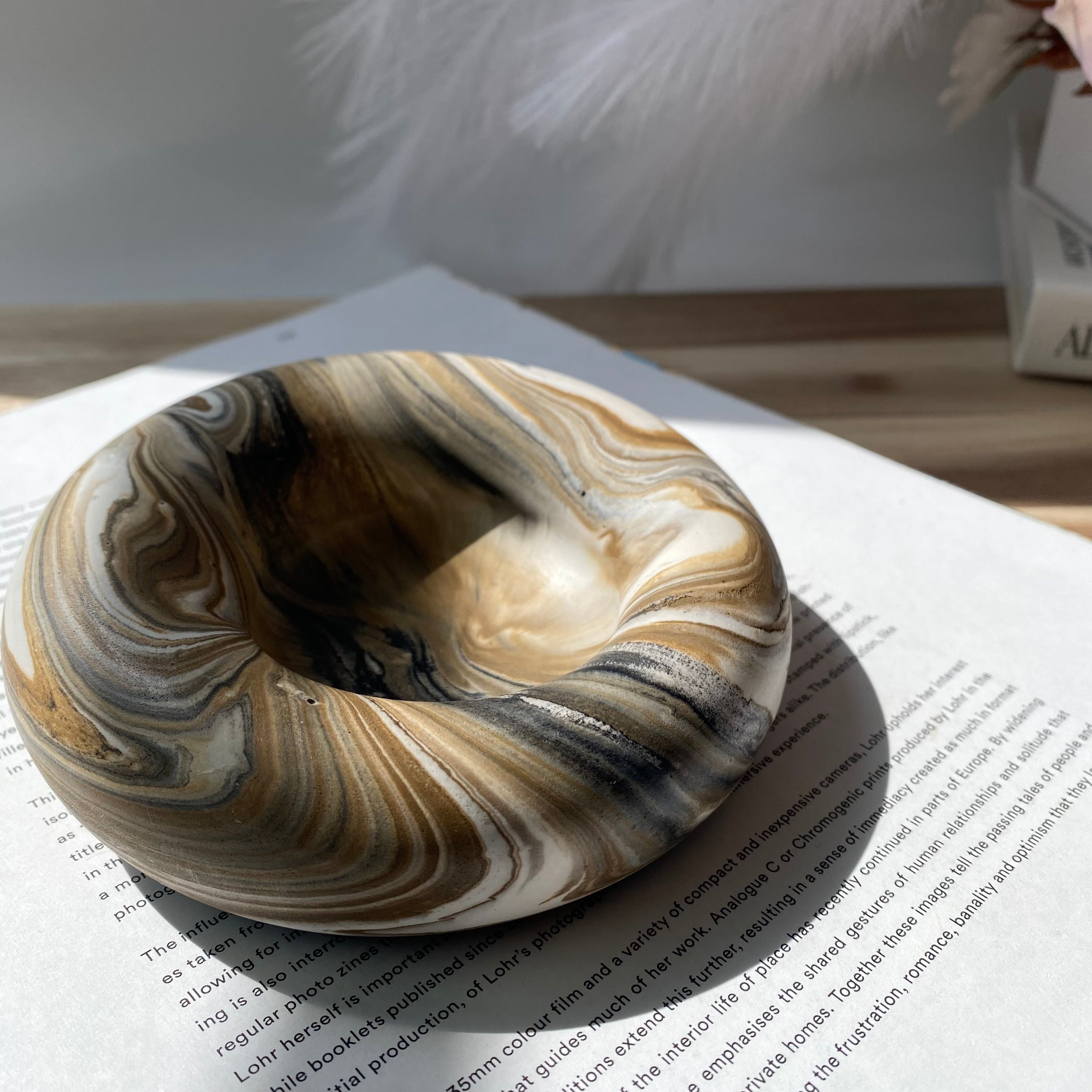 ドーナツのような愛らしさを持ちながらも、重厚感のある石のように静かな存在感を感じさせるフォルムが印象的なトレイ。