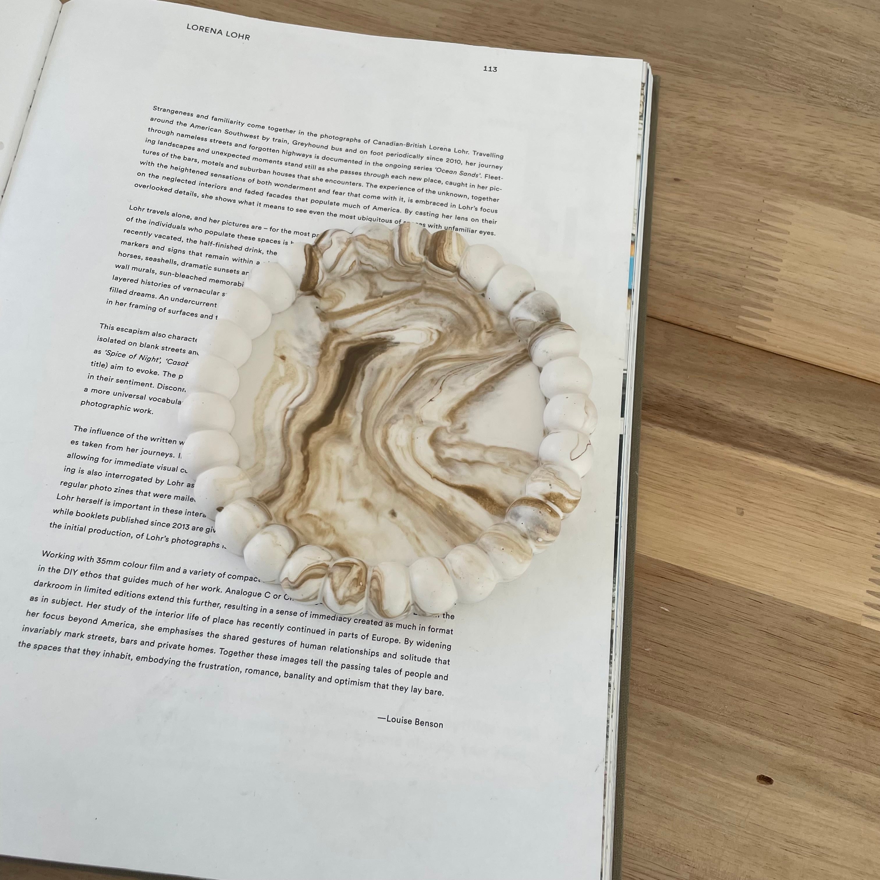 手のひらにちょこんと収まるサイズ感と、ベージュマーブルの自然な風合いが相まって、空間にやさしいアクセントを添えてくれます。