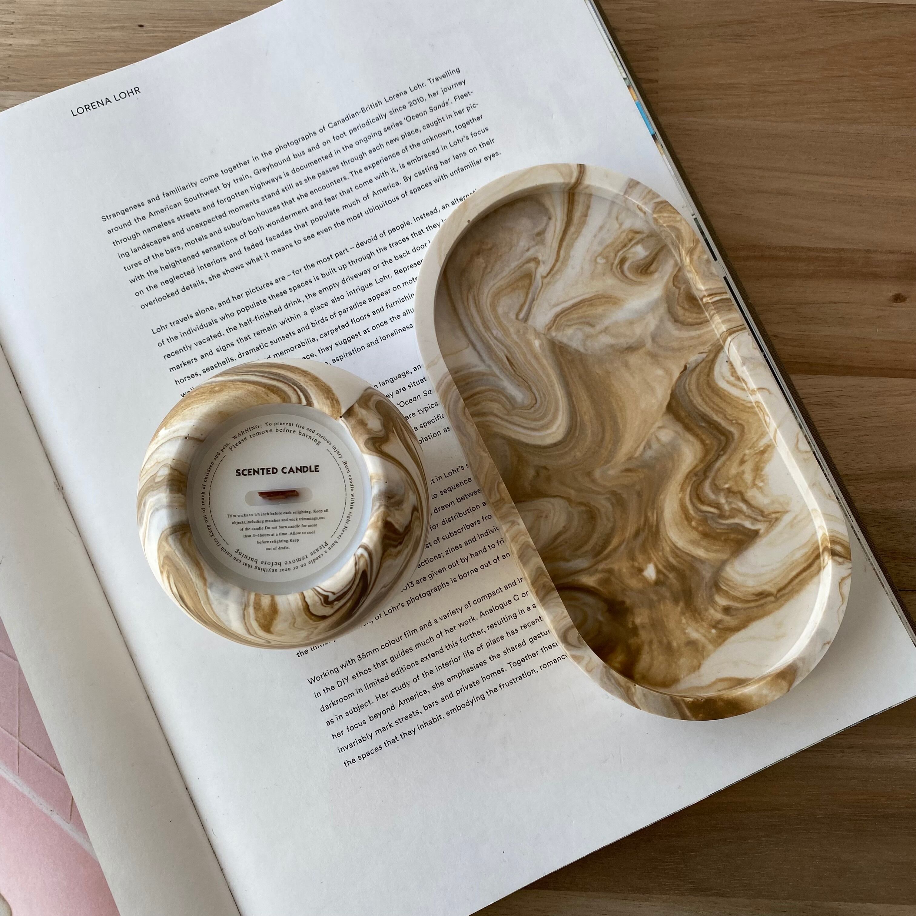 【GIFTSET】Potteri Candle & Oval Tray / Beige Marble